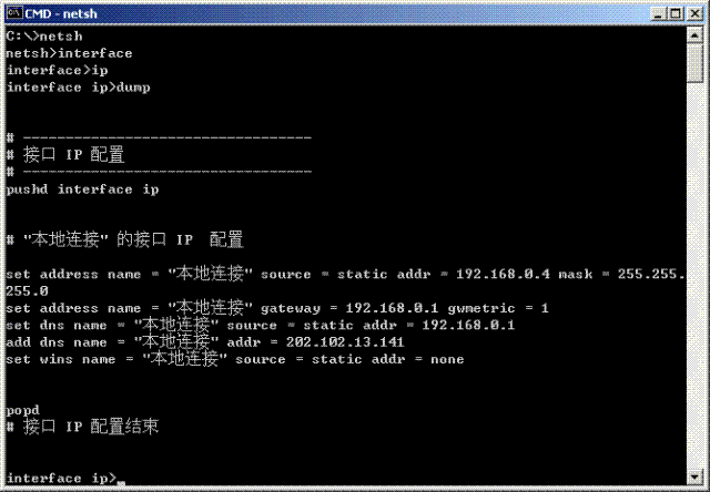 呵呵,列出了兩塊網(wǎng)卡,其中接口名為“本地連接”的這塊網(wǎng)卡配置情況: